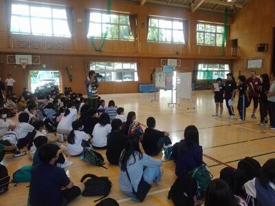 初めに足尾小中学校や地域のことを説明し、学校内を見学しました。