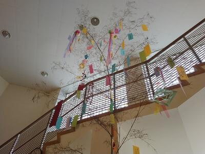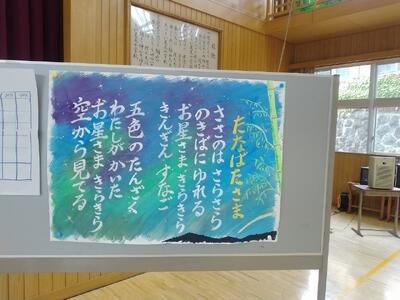 7月5日(金)の昼休みに、広報委員会の企画、運営で七夕集会が開かれました。6月末から一人ひとりが短冊に願いを書き、階段の笹に飾っていました。今回の集会では、小中学校の児童生徒全員で「たなばたさま」の歌を歌い、クイズやゲームをしながら季節の行事を楽しみました。こうした委員会による自主的で楽しい活動を通して、より良い人間関係を築いたり、集団で活動する良さを感じ取ったりすることにつながっています。