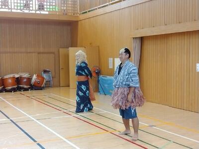 7月8日(月)に今年5回目の最後の直利太鼓の練習がありました。初回はうまく叩けなかった7年生も、5回の練習を通してみるみる上達しました。また、9年生は力強さを増し、堂々と叩く姿が一層頼もしくなり、8年生はさらに自信を持つことができたように感じます。直利音頭保存会の皆さんの笛や唄、鐘、そして踊りも入れての熱のこもった練習で、学校中に直利音頭が響き渡りました。今後、8月の石刀節と納涼祭で披露できることがとても楽しみです。保存会の皆さん、今後もどうぞよろしくお願いいたします。