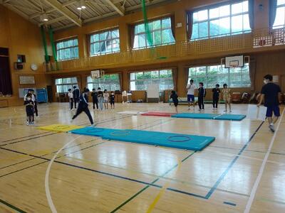 中学生の様子です。中学生は「記録に挑戦」「美しい演技」「夢の実現」が学年ごとのテーマです。