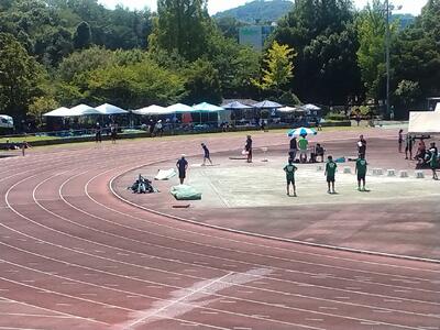 7月22日(火)と23日(火)に県中学総体陸上大会が、宇都宮市のカンセキスタジアム(県陸上競技場)で行われました。足尾中からは、日光市代表として、7年生女子1名と8年生男子1名が砲丸投げの種目に出場しました。暑い中での大会でしたが、立派なスタジアムで各市町の代表生徒がそれぞれの種目に真剣に取り組みました。本校生徒も自分の目標に向けて力一杯取り組みました。入賞はありませんでしたが、自分の競技のみではなく、他校の生徒の頑張る姿を見ることができたことも大きな収穫でした。