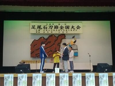 8月4日(日)、足尾市民センターにて、「足尾石刀節」の全国大会がありました。石刀節とは、足尾銅山で仕事歌として親しまれてきた郷土民謡のことです。各地から多くの参加者が民謡を披露する中、直利音頭保存会の皆さんとともに、本校生徒が、直利音頭を披露しました。