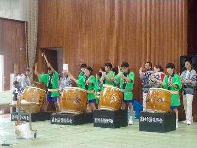 暑い中でしたが、本校生徒、職員も保存会の皆さんと、素敵な演奏を披露しました。次回は13日の納涼祭で演奏をします。