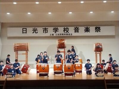 8月13日(火)に『足尾納涼祭』が開催され、本校生徒も直利音頭の演奏等で参加しました。直利音頭保存会の皆さんにご指導をいただきながら練習を重ねてきた太鼓を、地域の方々の前で力強く演奏しました。昨年度は、『足尾祭り』を子ども達と地域の方々で復元しましたが、今年度は実行委員会の皆さんと地域の有志の方々を中心に、当時の祭りの音色と踊りを直利音頭の前に実施してくださいました。納涼祭の途中からは大雨となってしましましたが、地域の方々や里帰りをした方が笑顔で楽しく集うことのできた素敵な一日となりました。