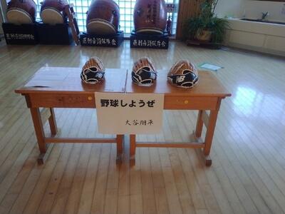 1月12日(金) メディアでも話題になった、メジャーリーガーの大谷翔平選手から寄贈していただいた、野球用のグラブがが本校にも届きました。12日の朝、児童生徒にお披露目して、昇降口に展示してあります。子供たちが早速グラブを手にとって、笑顔を見せていました。