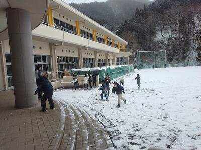 1月16日(火) 昨日からの雪が積もり、足尾は、いつもより遅い本格的な冬景色になりました。寒風吹きすさぶ中、子供たちは元気に走り回り、歓声を上げて遊んでいました。