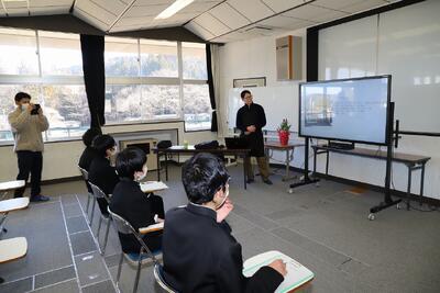 12月18日(月) 5校時に児童生徒会役員選挙立ち会い演説会および投票を行いました。今年度は、会長、副会長、会計に各1名ずつの立候補があり、立ち会い演説の中で、それぞれが来年度の足尾小中学校におけるリーダーとしての意気込みを語りました。その後会場を理科室に移し投票が行われました。