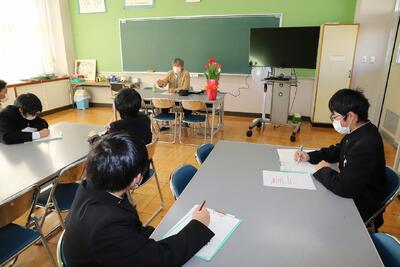 1月30日(火) 7年生は東中学校で行われた出前マイチャレンジに参加しました。日光市全体で中学校2年生時に行われている「マイチャレンジ」は、生徒が実際に事業所に行って職業体験や職場見学を行うのですが、今回の企画は企業の方が学校に出向いて職業などについて教えてくださるものです。将来仕事を持つことについて具体的なイメージがつくと良いと思います。