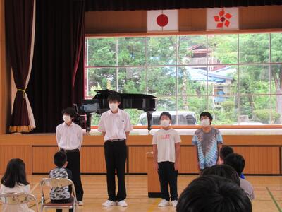3月17日(金) 6年生四名の卒業式を行いました。卒業生は、4月からまたこの校舎で過ごすわけですが、小学校6年間の卒業という大きな節目として、厳粛かつ、温かい式が行われました。四名の卒業生は、堂々とした態度で卒業証書を受け取り、卒業に向けてのスピーチ、担任の先生に対してのお礼の言葉を立派に発表することができました。