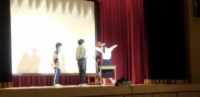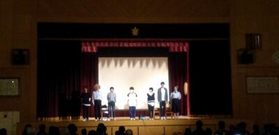 3月10日(金) 5校時に1年生の音読劇「スイミー」を行いました。卒業を控えた9年生を招待して披露しました。1年生は一名ですが、二名の2年生がお手伝いをしました。とても上手に披露することができました。現在の9年生も9年前同じように学習していたのだと思います。小中学校9年間の学びは本当に大きいなだなと感じました。