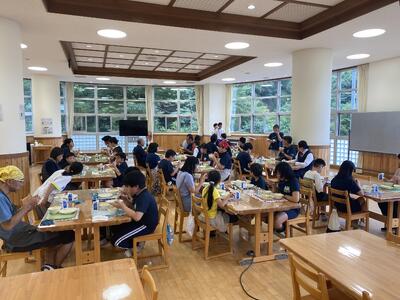 その後、地域の皆様のご厚意により、卓球部の部員生徒に昼食をつくって御馳走してくださいました。日頃より「わたらせ茶屋」さんでお腹いっぱいに食べさせていただいていますが、今回は学校へお越しいただき、全員で会食となりました。