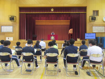 生徒指導担当から、冬休みの過ごし方について話をしました。