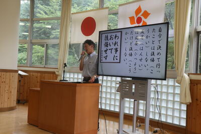 一人ひとりが盾に記入した「立志のことば」とその決意を発表しました。