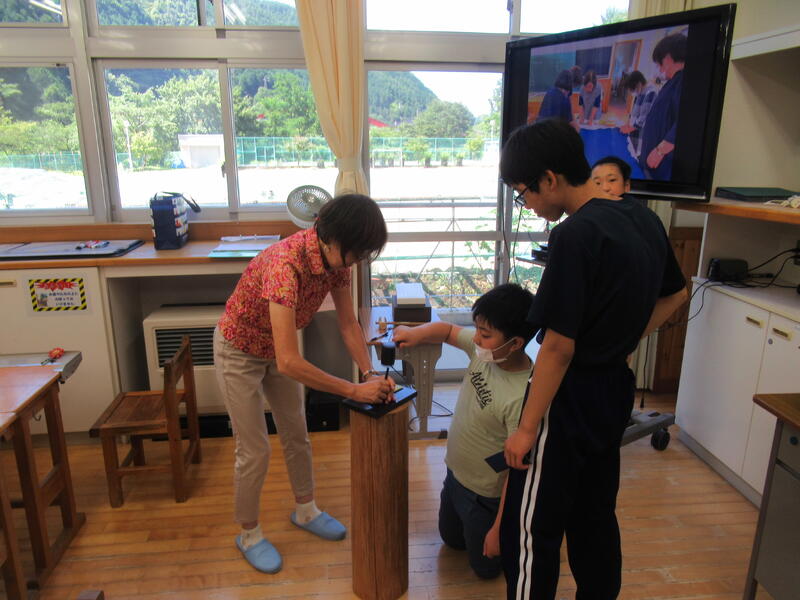 皆さんに生徒から、感謝の気持ちを込めて、「肩たたき」のプレゼントをしました。