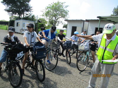 自転車事故になる事例や交通ルールを守る大切さについて動画で学んだ後、ヘルメットの正しい着用の仕方や自転車整備の「ブタはシしゃベル」について教えていただきました。