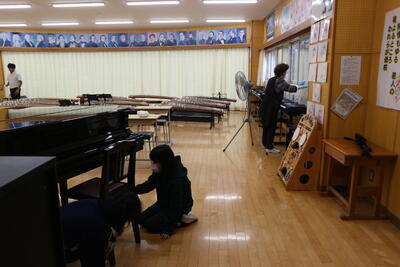午後は明日の入学式の準備を行いました。足尾小中学校は人数は少ないですが、自分の役割や分担を一人ひとりがしっかりと行います。子どもたちも先生達とともに、全員が手際よく着実に準備をすすめていきます。