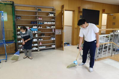3月10日(月)、明日の中学校卒業式に向け、在校生が会場や教室等の準備を行ないました。卒業式を温かな雰囲気や環境の中で行えるよう、心をこめて準備や飾りつけ、清掃等を全員ががんばりました。