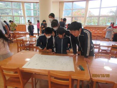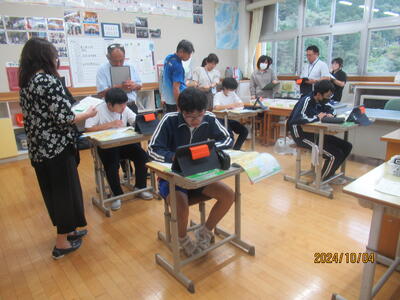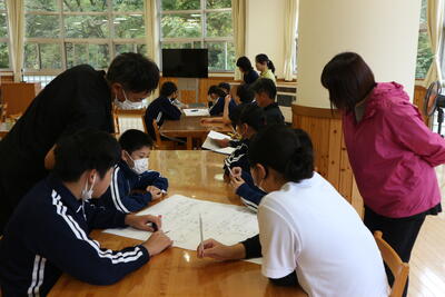 7年生の授業についての話合いを全体で共有し、指導主事の先生から指導や助言をいただきました。本日の授業公開や研究授業を通して、今後も本校の小中一貫教育や小規模校としての良さや特徴を生かして、学校全体で子ども達の学びの質を高めていく機会となりました。