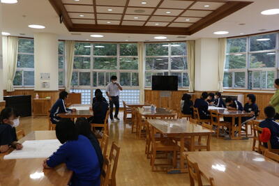不審者が確保された放送を聞き、ランチルームで今回の訓練についての反省を行うとともに、職員からの話を聞きました。今回は各教室への避難を行いましたが、休み時間の場合や教室以外の場所にいた場合などの対応や避難の仕方について、グループで考えました。子ども達は、自分や友達の身を守るための方策について真剣に話し合いました。