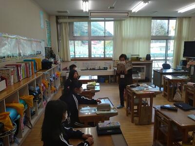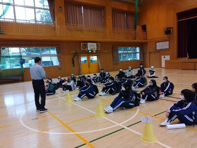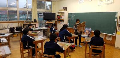 11月21日(火) 3校時、4校時に邦楽スクールコンサートの事業が行われました。地域の琴、三味線の先生方3名が来校し、5年生から9年生までの児童生徒が、それぞれの音楽の授業の中で、楽器の演奏体験と、模範演奏の鑑賞を行いました。