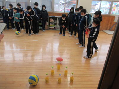 ジャンボリミッキーダンスの後、ぴったり玉入れ