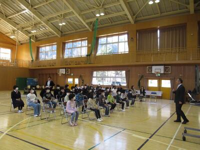 11月22日(水) 23日の勤労感謝の会を前に、日頃お世話になっている学校ボランティアの方々をお招きして、「ボランティア感謝の会」を開催しました。読み聞かせ、清掃、生花、交通指導、地域学習への協力等々、本校の児童生徒は、地域の方々に支えられて、健やかに成長しています。日頃の感謝の気持ちを「銅太鼓」の演奏に乗せました。今後も児童生徒の健やかな成長を目指し、地域の方々の協力を得ながら学校運営を進めていきます。
