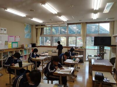 9月27日(水) 5校時に8年生で研究授業を行い、学力向上のための研修を行いました。授業研究会の講師には、栃木市教育研究所、元宇都宮大学教授の松本先生をお招きしました。本校では、児童生徒の学力向上を目的として、今年度は、主に3つの取り組みを行っています。一つ目は、授業改善に向けた研修です。小中の先生方がすべて参加して授業作りを行い、その授業を参観して自分の授業改善につなげていきます。二つ目は、朝の学習を多目的室で2~9年生全員でおこないます。上級生が学ぶ姿を下級生が見るのと同時に、上級生も責任ある学習態度をとることができます。三つ目は、5年生以上は宿題を廃止して自主学習を推進しています。自分に必要な学習を判断して、取り組む力をつけることが目的です。この力をつけることで、自分の進路を切り開くことができると考えています。また、これを推進するために、担任以外の先生方が、児童生徒1~2人ずつコーチングをする取り組みを始めました。少人数の学校のメリットを生かして、学力向上を進めていきます。