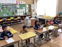 年長児を1・2年教室にお迎えして、小学校の行事や学校生活の発表を聞いてもらったり、一緒にお絵描きしたり、遊んだりしました。