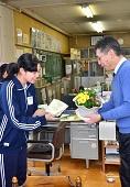 3月7日(木)小中の卒業生たち4名が、職員室を訪問し、先生方に感謝の気持ちを表してくれました。卒業文集、思い出のDVD、鉢花を持参し、これまでの感謝の言葉を添えて、手渡してくれました。