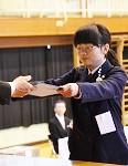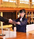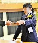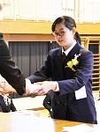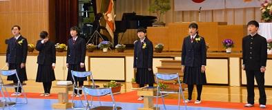 別れを惜しむかのようなみぞれ交じりの名残り雪が降る中で式は始まりました。卒業証書授与、式辞、告辞、祝辞と式が進み、在校生の送辞。代表生徒は、しっかりと感謝の気持ちを述べることができました。そして、卒業生3名による答辞。感情の高まりを押さえながら、しっかりと読み上げました。さらに、クライマックスの6人による合唱。あふれる涙を抑えられないシーンもありましたが、素敵な「友よ」を届けてくれました。式場のあちこちに、目頭を押さえる人、鼻をすすり上げる人、式場にとてもあたたかい空気が流れていました。