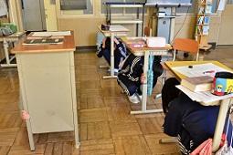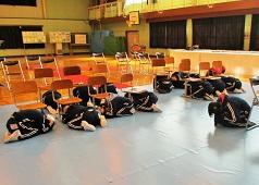 小学校は、卒業式の練習中に体育館で、中学校は休み時間中に訓練を促す放送を流し、身を守る行動の確認を行いました。子どもたちの反応は素早く、訓練解除のアナウンスがあっても、しばらくその姿勢を保っていました。