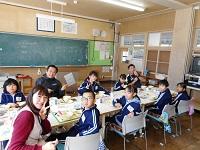 明日はいよいよ小学校の卒業式です。いつもは上学年と下学年に分かれて食べている給食ですが,今日は6年生が下学年のランチルームにやってきて,おわかれ給食を実施しました。6年生に感謝を込めながら楽しく会食できました。