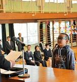 3名の代表児童生徒は、今年度を振り返りながら新年度への課題について発表しました。また、校長からは、お互いに感謝する気持ちの大切さについて話がありました。