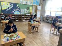 今は、以前のようにみんなでランチルームに集まって、会話をしながらの食事は出来ませんが、中学生の教室では楽しい音楽をかけながら給食を食べていました。よく食べ、よく運動する中宮祠っこ!今日も残食ゼロで元気いっぱいです!