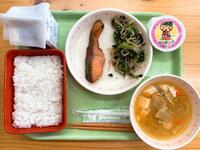 ご飯、牛乳、いわしのごま味噌煮、白菜の香り漬け、里芋と大根のそぼろ煮、福豆と節分の日献立でした。