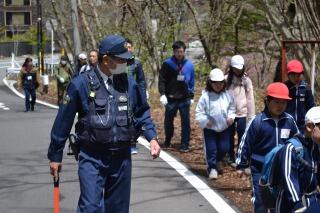 ゴールデンウィーク期間ということもあり、車の通りが多く、茶ノ木平と学校間の道のりが一番心配されました。そのような状況を見て、子どもたちはお互いに声を掛け合うなど、交通安全に気を付けながら歩いていました。また、参加された保護者の皆様や警察官の方の助けもあり、無事に行って帰ってくることができました。ありがとうございました。