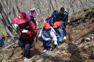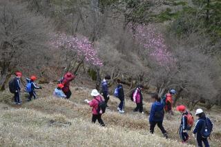 ヤシオツツジに見守られ、下山です。帰りも交通安全に気を付けて、元気いっぱい学校まで歩きました。