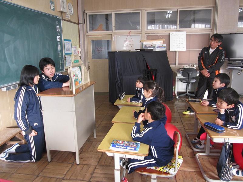 1・2年生の子どもたちは、静かにお話の中に引き込まれていました。