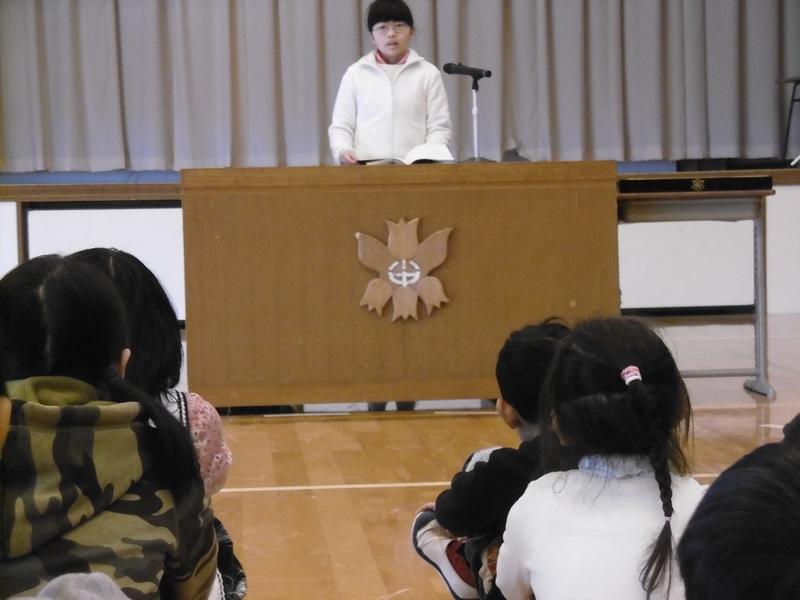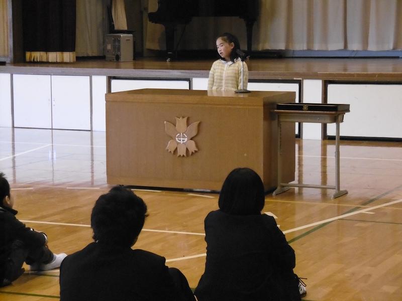 長かった2学期もいよいよ今日で終了です。終業式では、校長の話の後、児童の意見発表がありました。