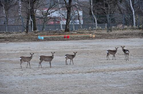 4月18日(水)18:30頃、校庭に5頭の鹿が現れました。