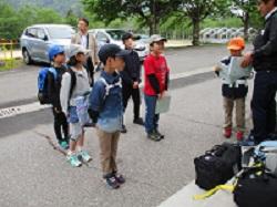 朝6:20出発式を行い、元気にバスに乗り込みました。今回は、清滝小学校と