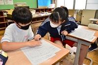 5年生の国語の授業風景です。1名の5年生なので話し合う活動ができません。そこで保健の先生にも授業に入っていただき,話合いを行いました。
