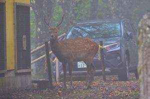 最近,シカが多く現れます。朝靄の中から角の生えた雄ジカが登場してきました。幻想的な風景でした。