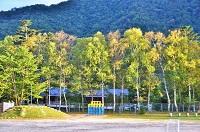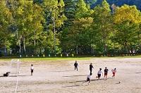 校庭の周りの白樺が色づき始めました。紅葉のすてきな時期です。そんな中で中学生6人が体育でサッカーをやっています。白樺も中学生を応援しているみたいです・・・