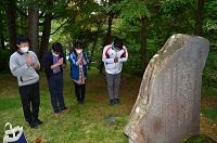 校舎流失追悼式を実施しました。予定の日が臨時休業になってしまったので,数名の教員が代表として行ってきました。本来なら小中学生が2つの班に分かれて,お墓と追悼碑にお線香とお花を供えます。中宮祠小中学校では,ずっと続いている大切な行事です。