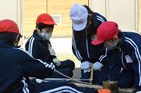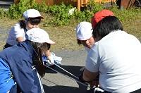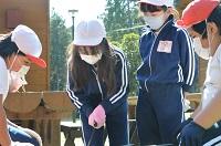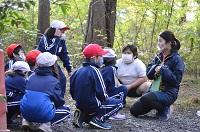 中宮祠小学校では,野鳥の観察,巣箱観察,巣箱作りと野鳥についての学習を行っています。今回は巣箱の観察です。講師として日光自然博物館から2名来ていただきました。学校の裏山に12個の巣箱があります。その中を観察します。野鳥は子育てが終わると巣箱から離れるので鳥と会うことはありませんが,巣作りをしたようすやかえらなかった卵などが見つかりました。