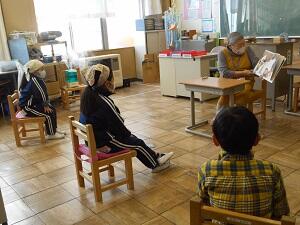 読み聞かせボランティア「ありんこ」による絵本の読み聞かせが行われました。「いつもよーく聞いてくれますね。」とボランティアさんからもお褒めも言葉をいただくなど真剣に聞いています。