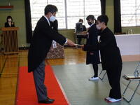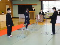 4月9日、中学校の入学式が行われました。新しい制服を着た2名の生徒が入学しました。
