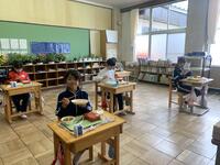 業間の時間に小学生のみの集会がおこなわれました。今日は、給食主任から「給食のマナー」について。マナーを守って給食を食べると自分や周りの友だちにどんな良いことがあるのか、また具体的に身につけて欲しいマナーの内容などの話がありました。実際に給食の時間になると、業間の話を思い出しながら、姿勢正しく焦らずゆっくりよく噛んで食べている様子がみられました。「いっぱい噛むとお腹いっぱいになるね~!」