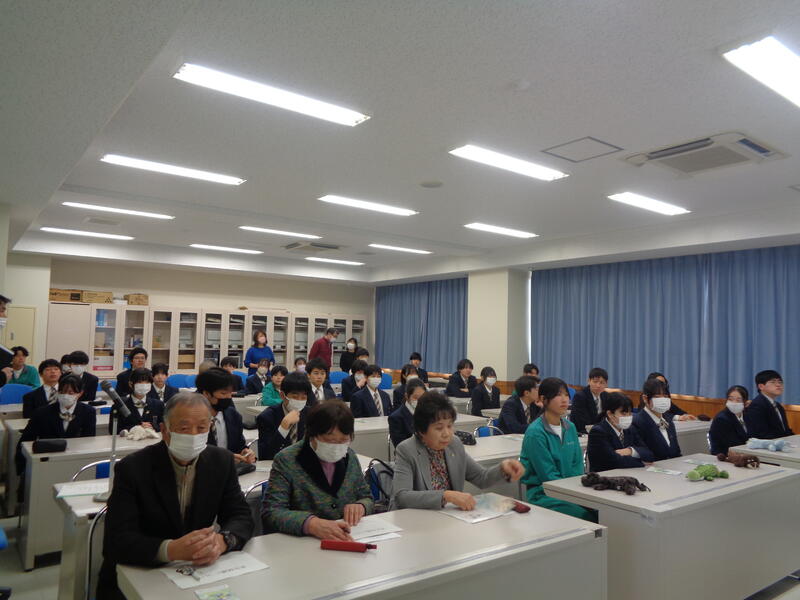 2月13日(金)2年生と日頃よりお世話になっている更生保護女性会の皆さまとの交流会を行いました。昨年度に引き続いての行事です。お忙しいところ、本校のために10名のメンバーの方にご来校いただきました。堀川様、伊藤様、大島様、沼尾(久)様、福田様、沼尾(敏)様、八木澤様、野村様、栗原様、山口様本当にありがとうございました。
